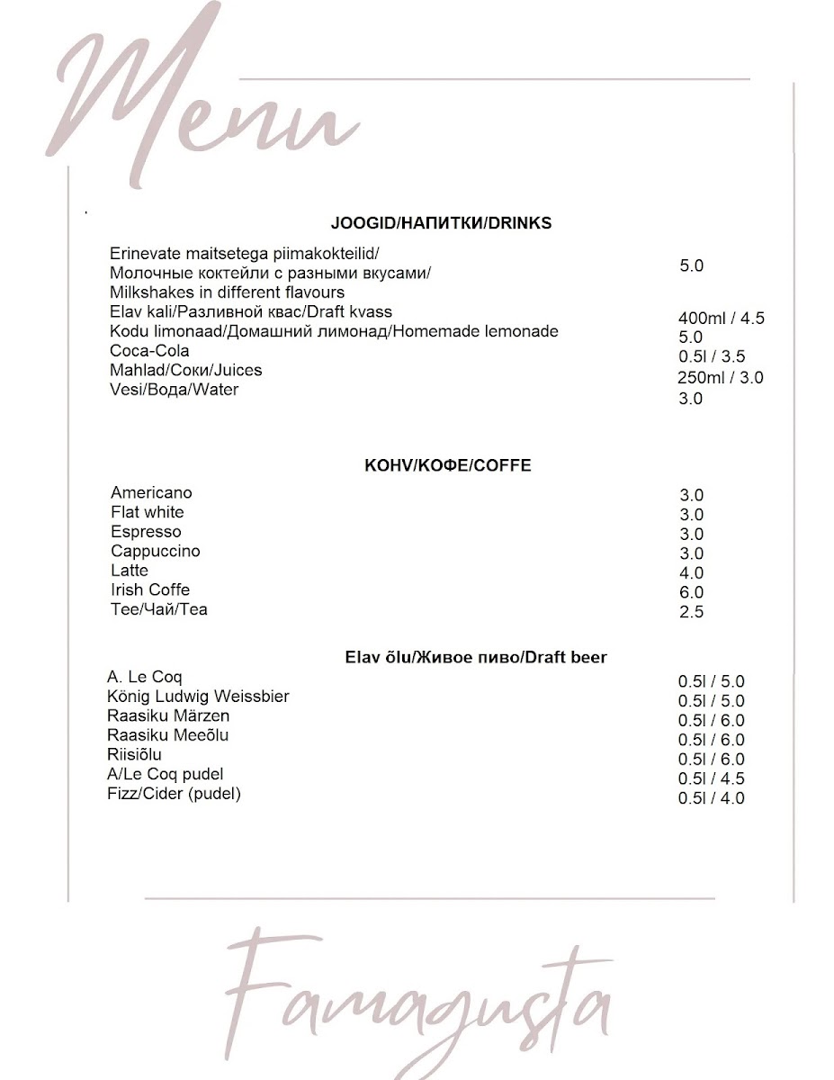 Open and vibrant, Kohvik Famagusta is more than just a place to dine; it’s a destination where you can relax, enjoy good company, and indulge in flavors that will leave you wanting more. Whether you're a local or a traveler, make sure to stop by and experience the cozy charm and tasteful offerings of this lovely cafe.